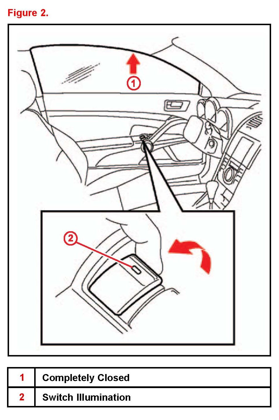 3. Pull "UP" and hold the driver door power window switch until the window closes. Continue holding the switch until the switch stops blinking and remains illuminated.