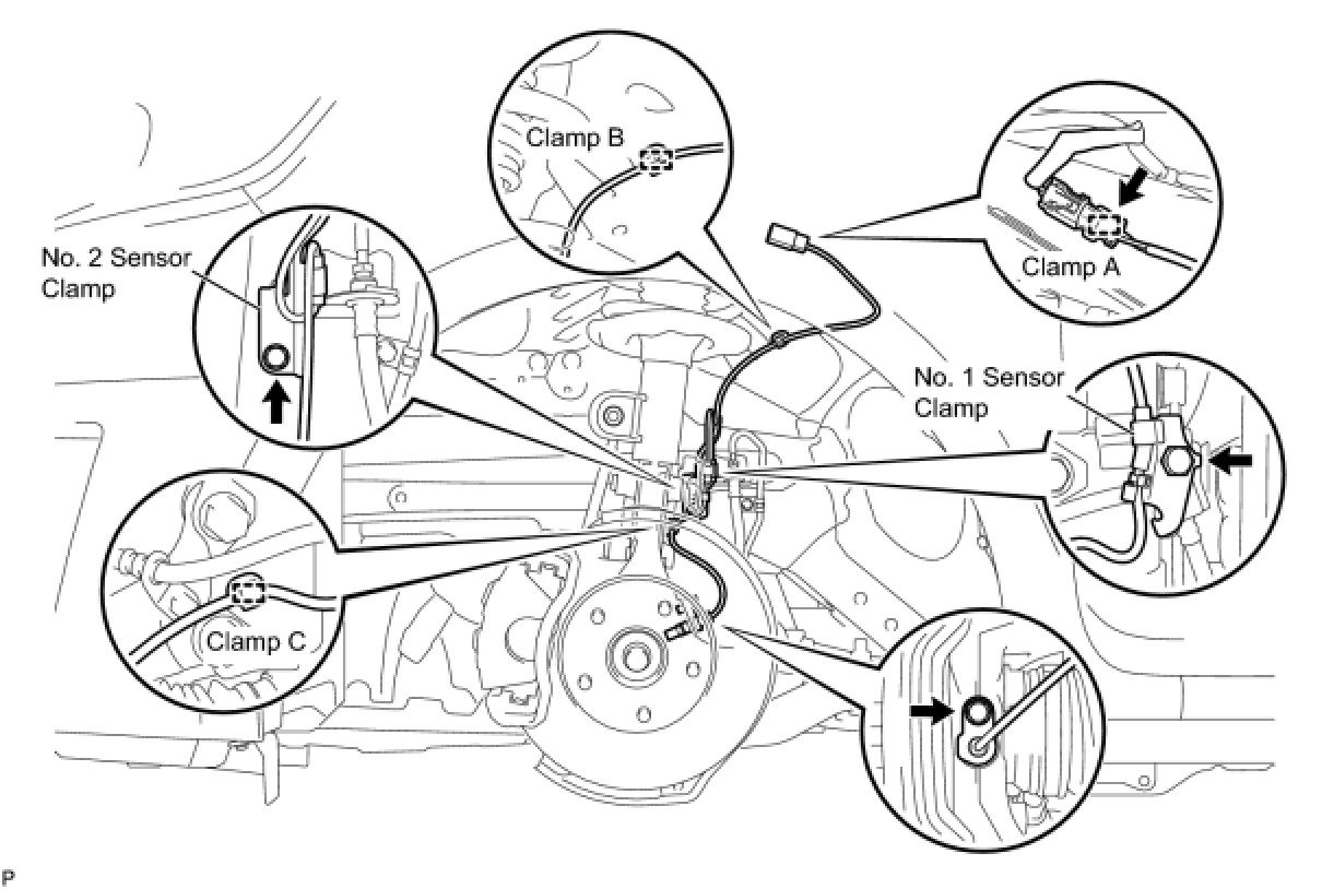 (d) Remove the bolt and No. 2 sensor clamp from the body.