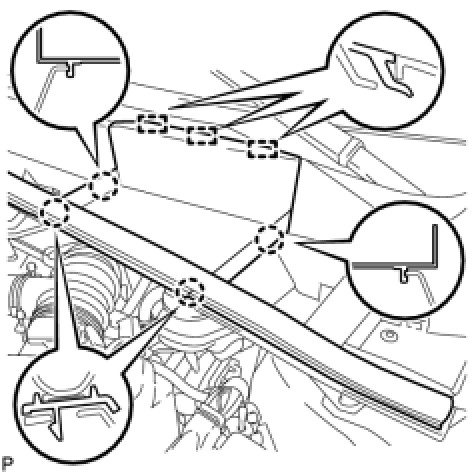 (a) Disengage the 4 claws and 3 guides and remove the cowl top ventilator louver.