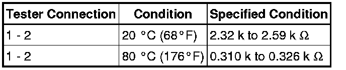 If the resistance is not as specified, replace the engine coolant temperature sensor.