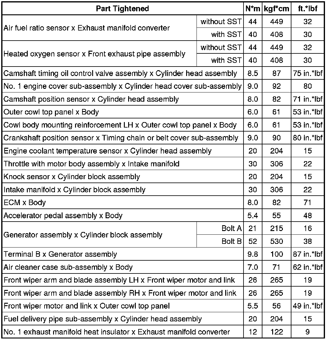SERVICE SPECIFICATIONS: 2AZ-FE ENGINE CONTROL SYSTEM: TORQUE SPECIFICATIONS