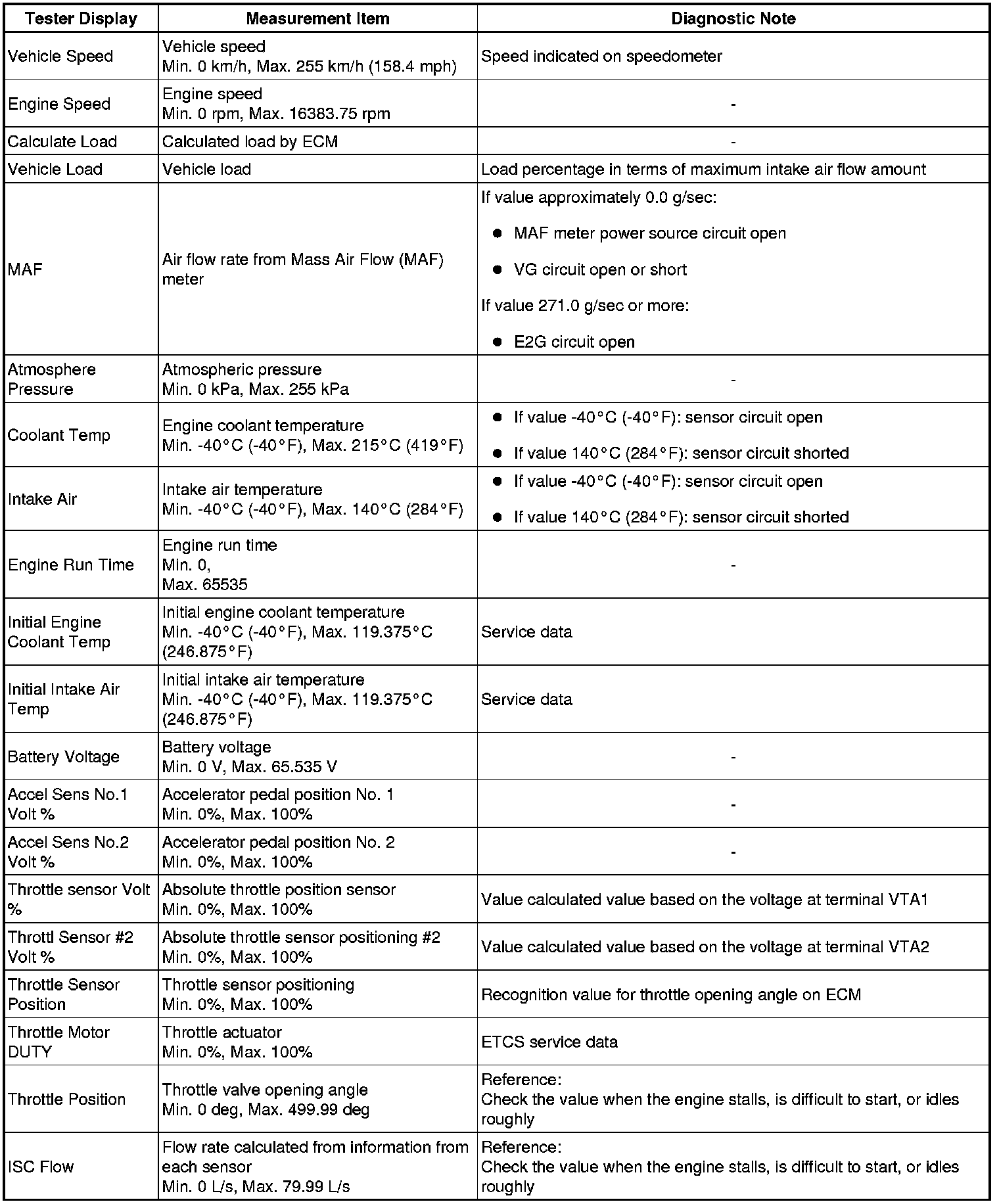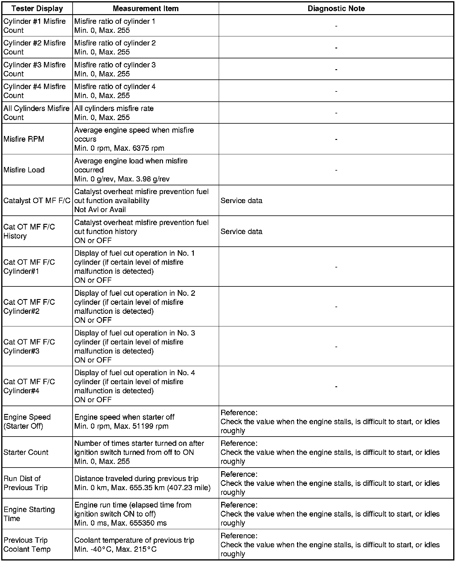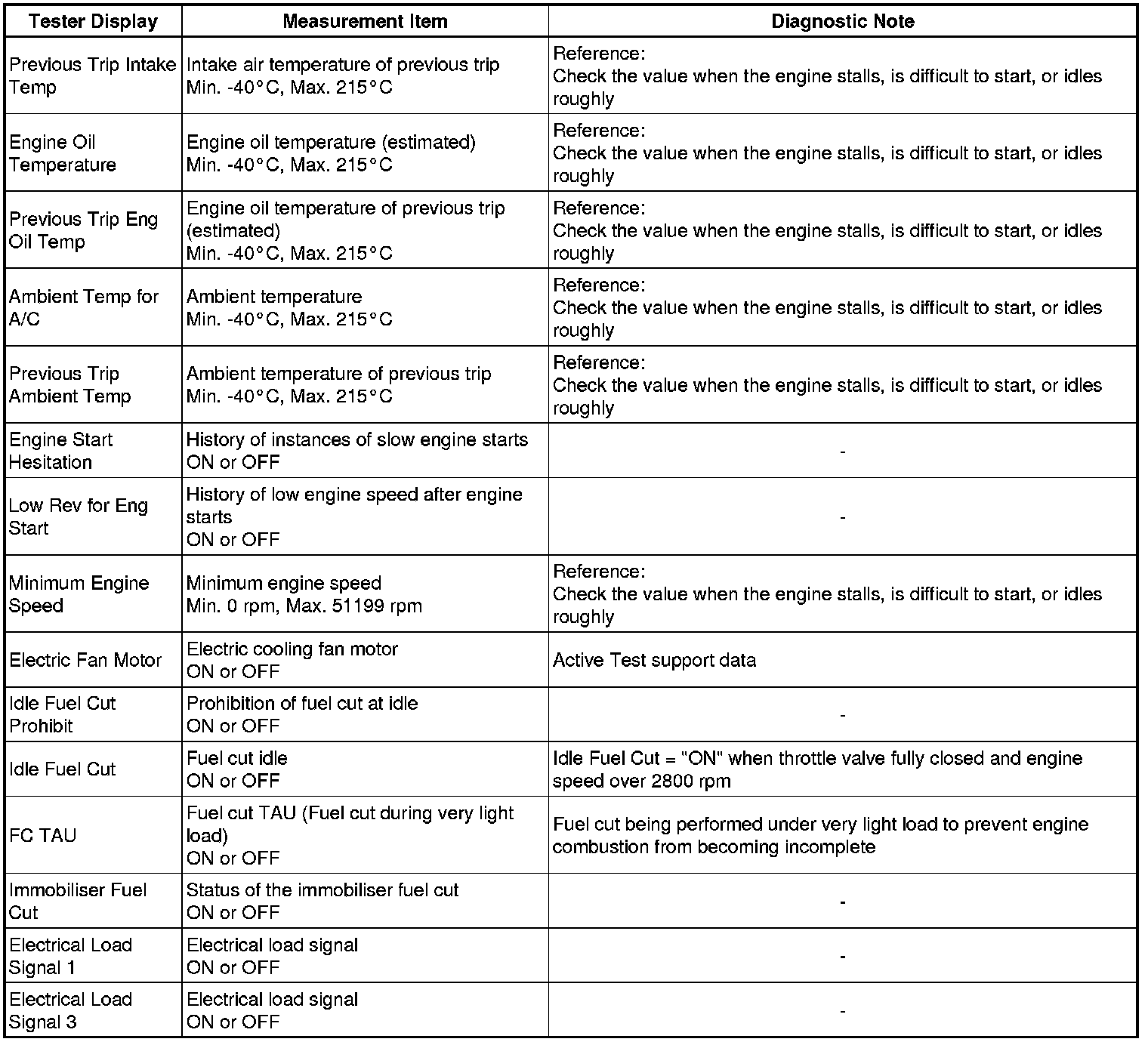 * The ECM records vehicle and driving condition information as freeze frame data the moment a DTC is stored. When troubleshooting, freeze frame data can be helpful in determining whether the vehicle was moving or stationary, whether the engine was warmed up or not, whether the air-fuel ratio was lean or rich, as well as other data recorded at the time of a malfunction.