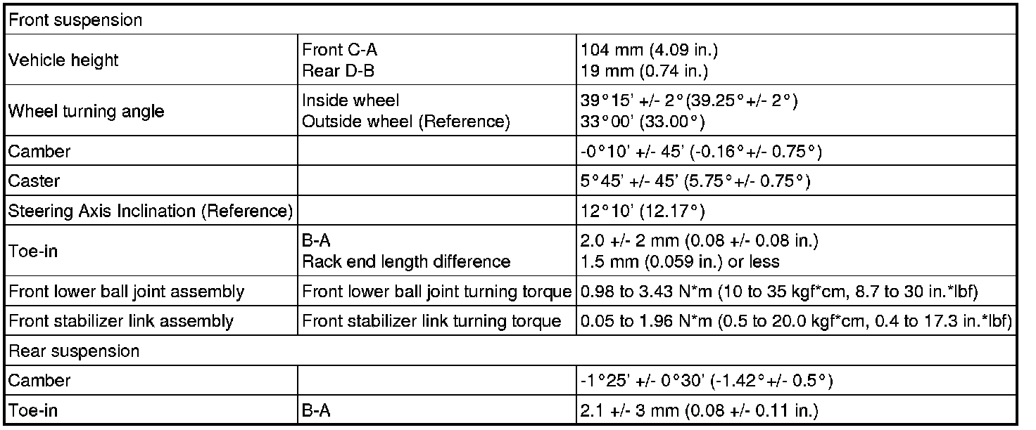 SERVICE SPECIFICATIONS: SUSPENSION: SERVICE DATA