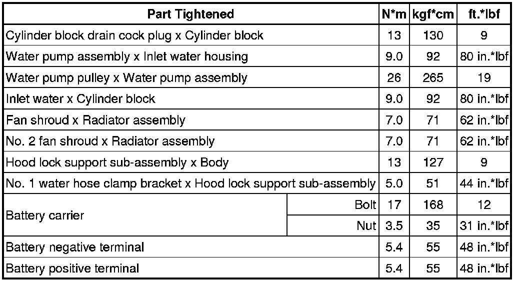 SERVICE SPECIFICATIONS: 2AZ-FE COOLING: TORQUE SPECIFICATIONS