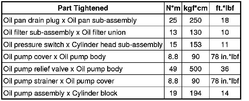 SERVICE SPECIFICATIONS: 2AZ-FE LUBRICATION: TORQUE SPECIFICATIONS