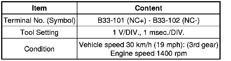 In the table, first follow the information under "Condition". Look under "Terminal No. (Symbol)" for the terminals to be inspected. The standard voltage between the terminals is shown under "Specified Condition".
