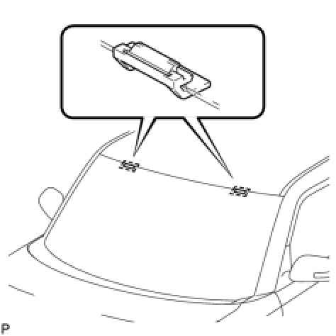 (f) Place matchmarks on the windshield glass and vehicle body on the locations indicated in the illustration.