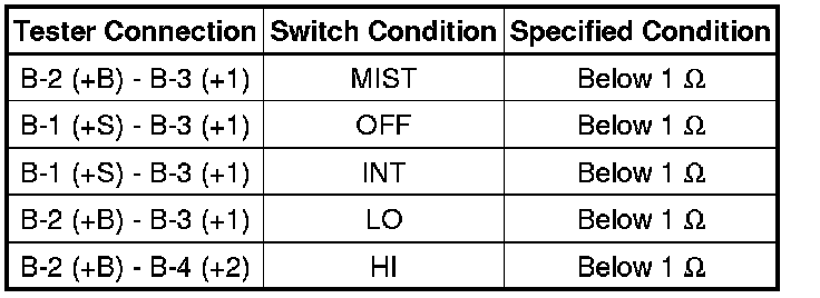 (4) If the result is not as specified, replace the windshield wiper switch.