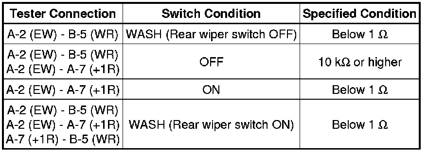 (4) If the result is not as specified, replace the wiper switch.