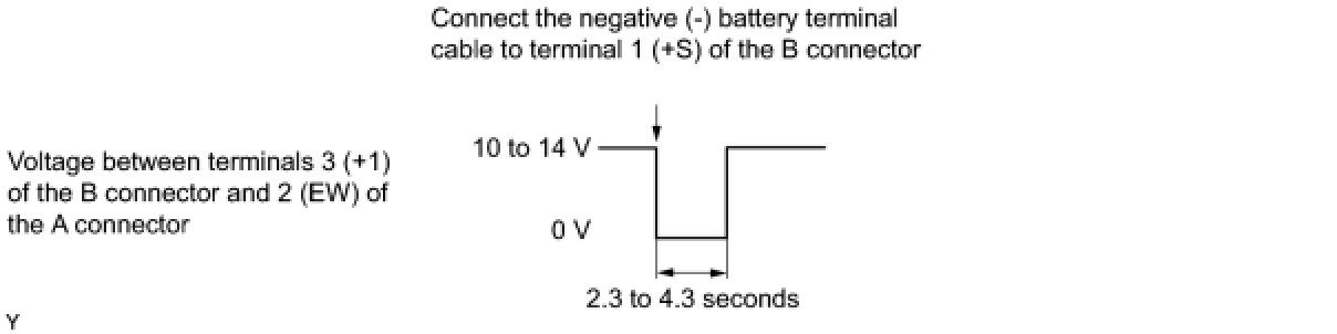 (1) Connect the positive (+) voltmeter terminal to terminal 3 (+1) of the B connector and the negative (-) voltmeter terminal to terminal 2 (EW) of the A connector.