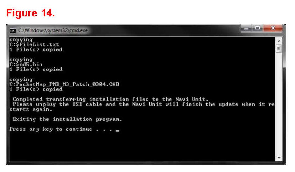 14. After notification of completion on the black pop-up window, disconnect the USB cable from the Navigation Module.