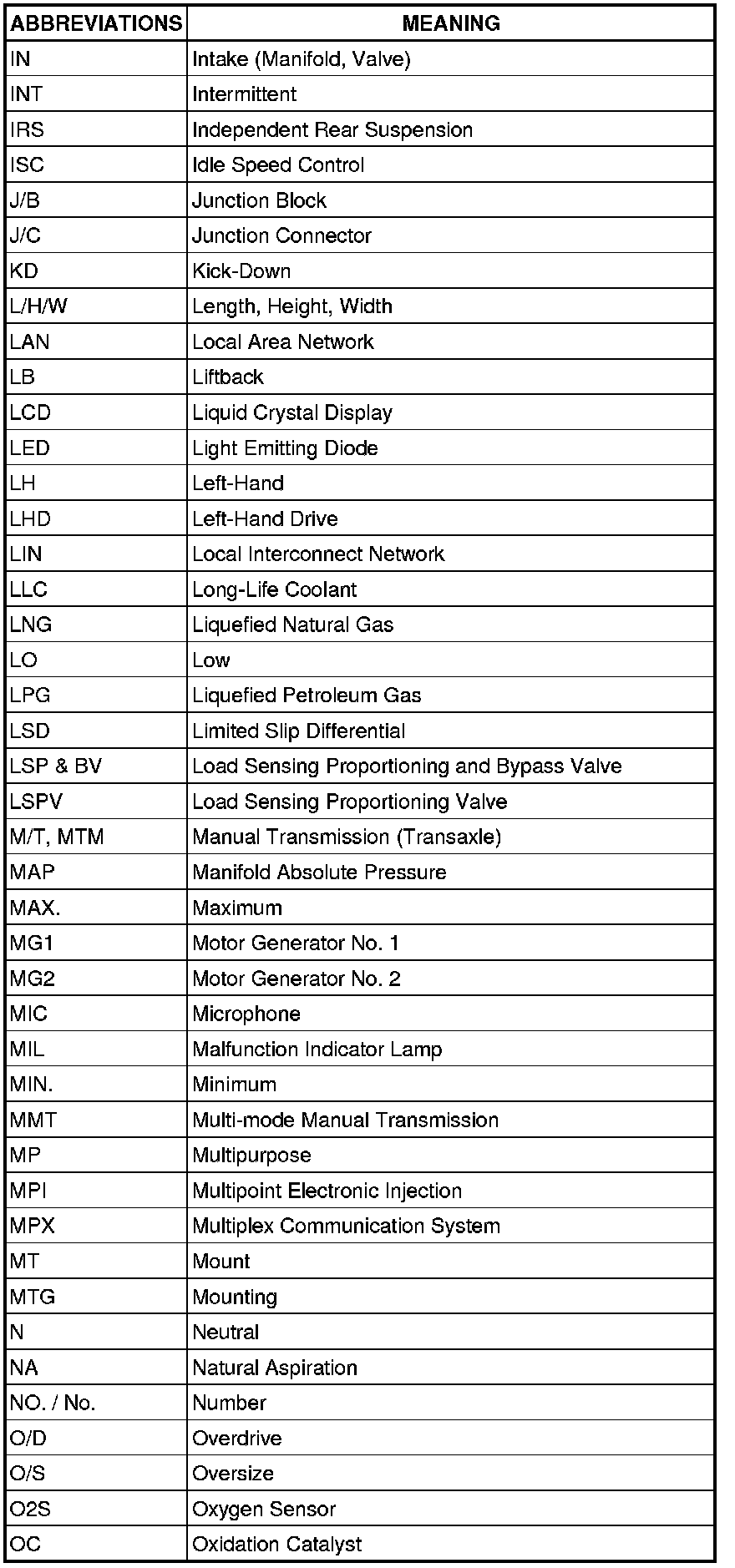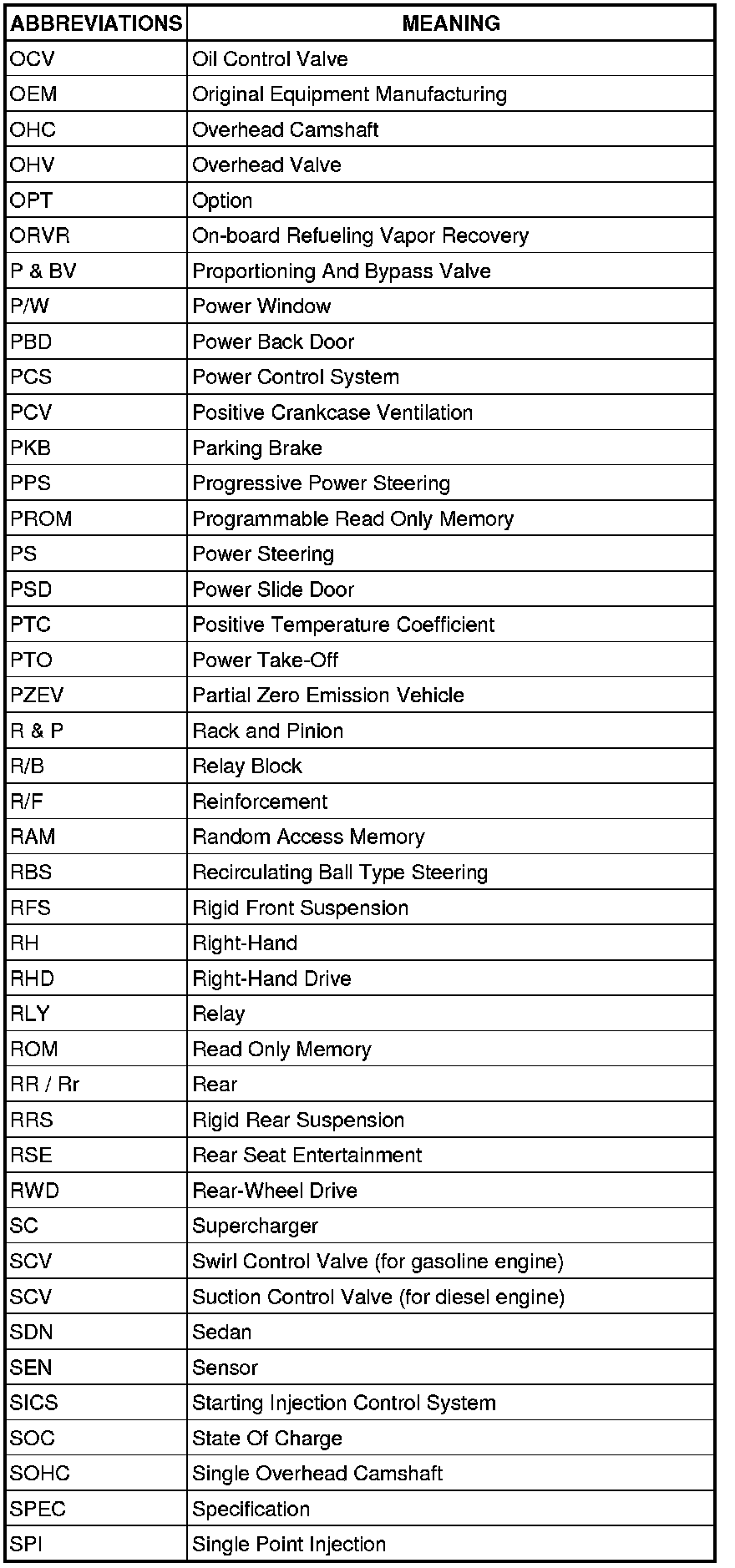 Terms - Abbreviations Used In Service Procedures