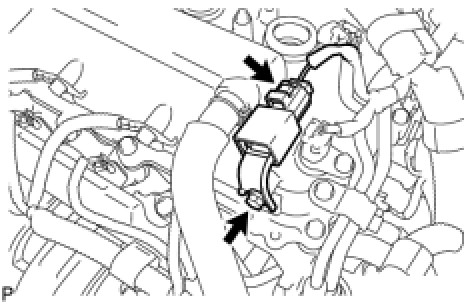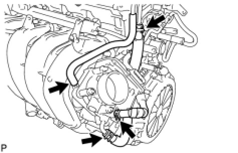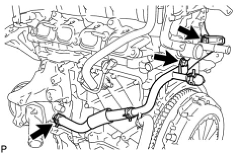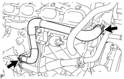 (a) Loosen the 2 clips and separate the 2 water by-pass hoses.
