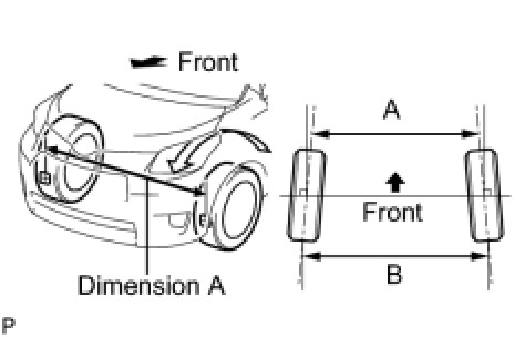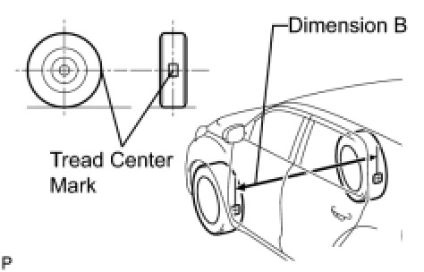 (d) Put tread center marks on the rearmost points of the front wheels and measure the distance between the marks (dimension B).