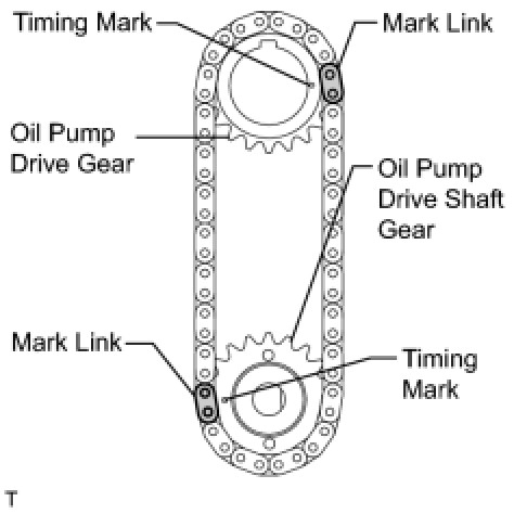 Align the yellow mark links with the timing marks of each gear as shown in the illustration.