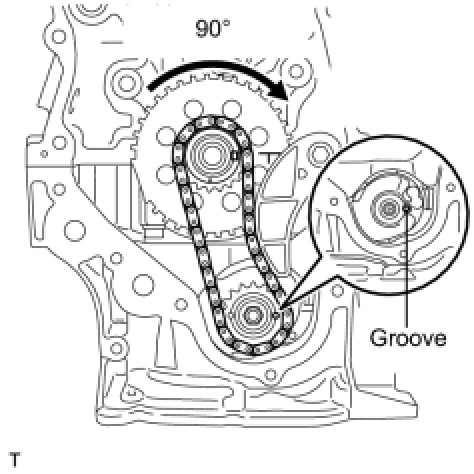 Align the adjusting hole of the oil pump drive shaft gear with the groove of the oil pump.
