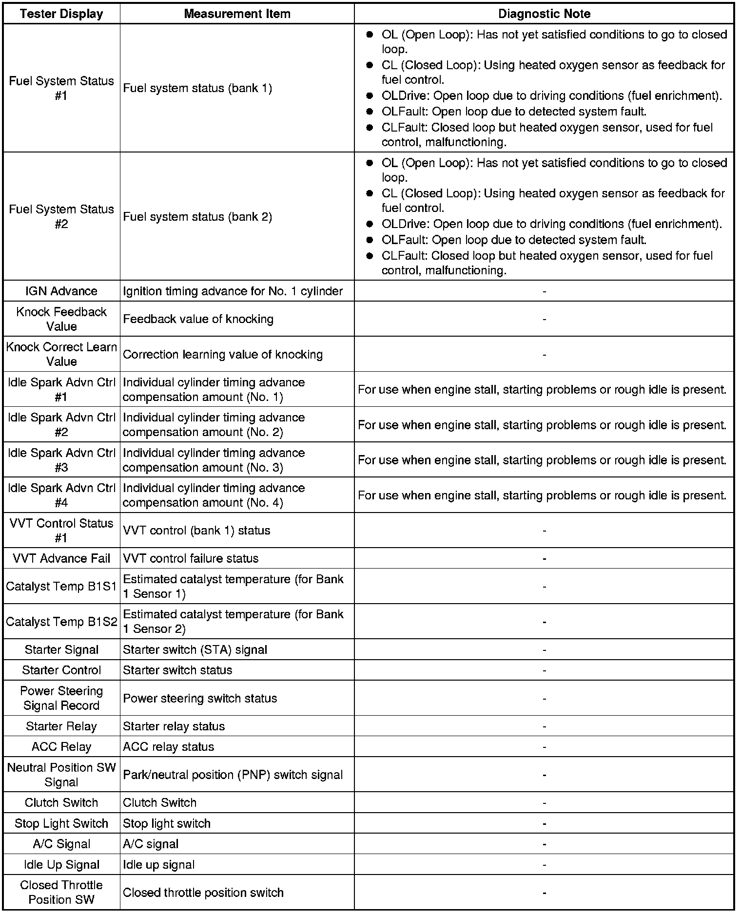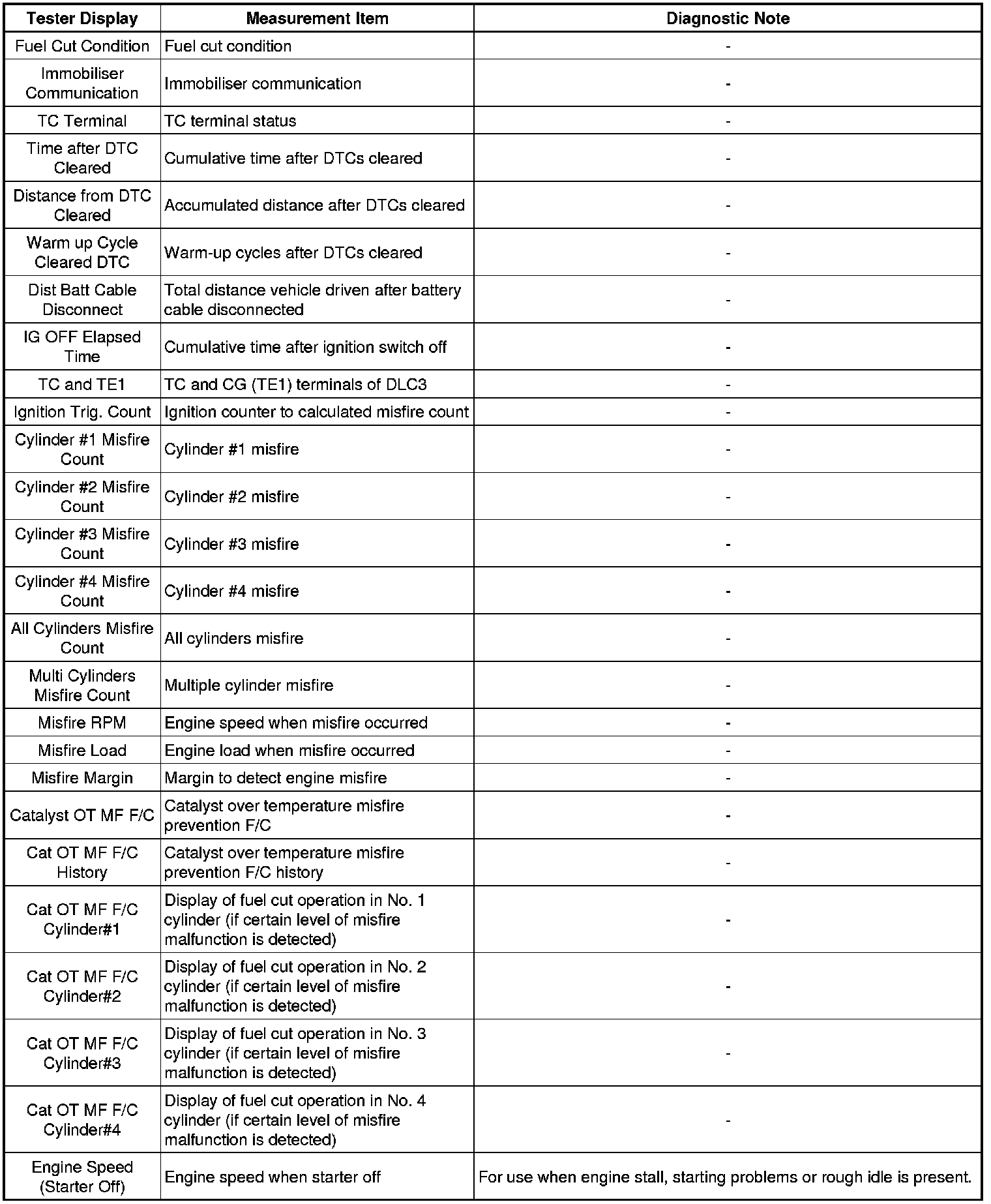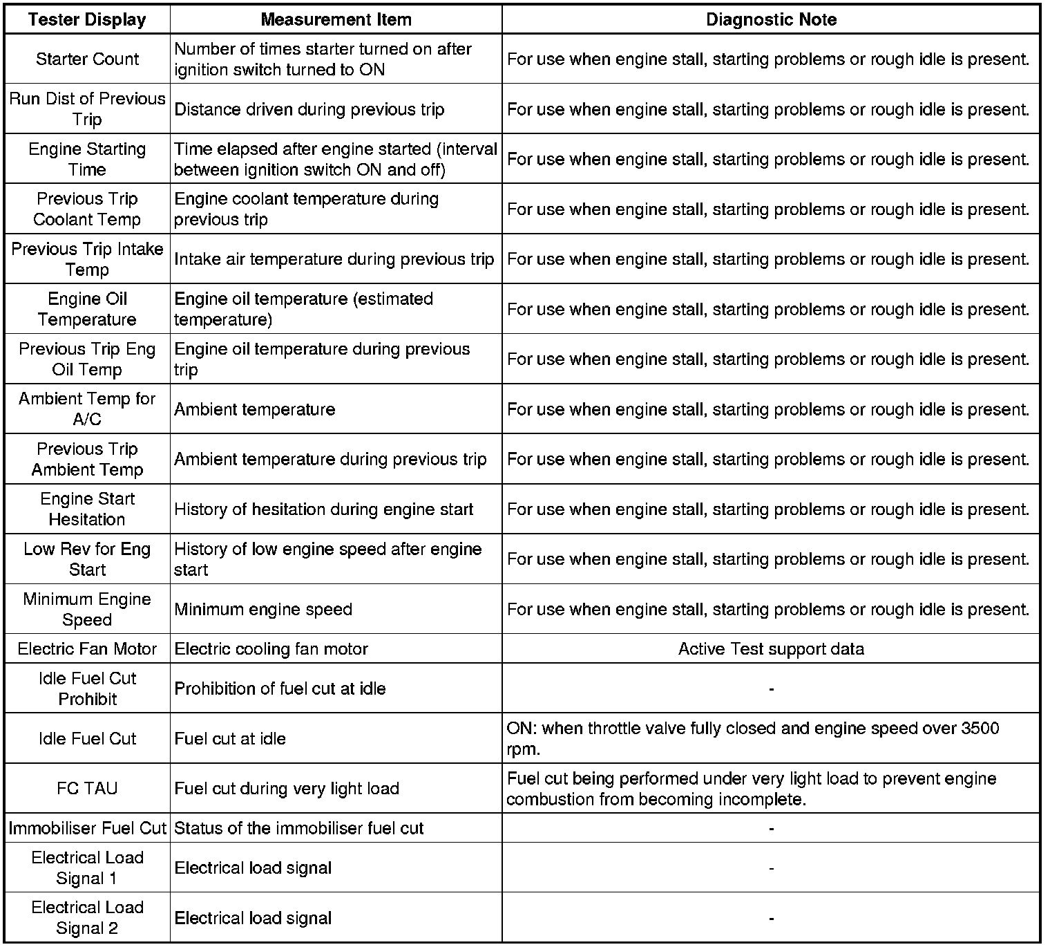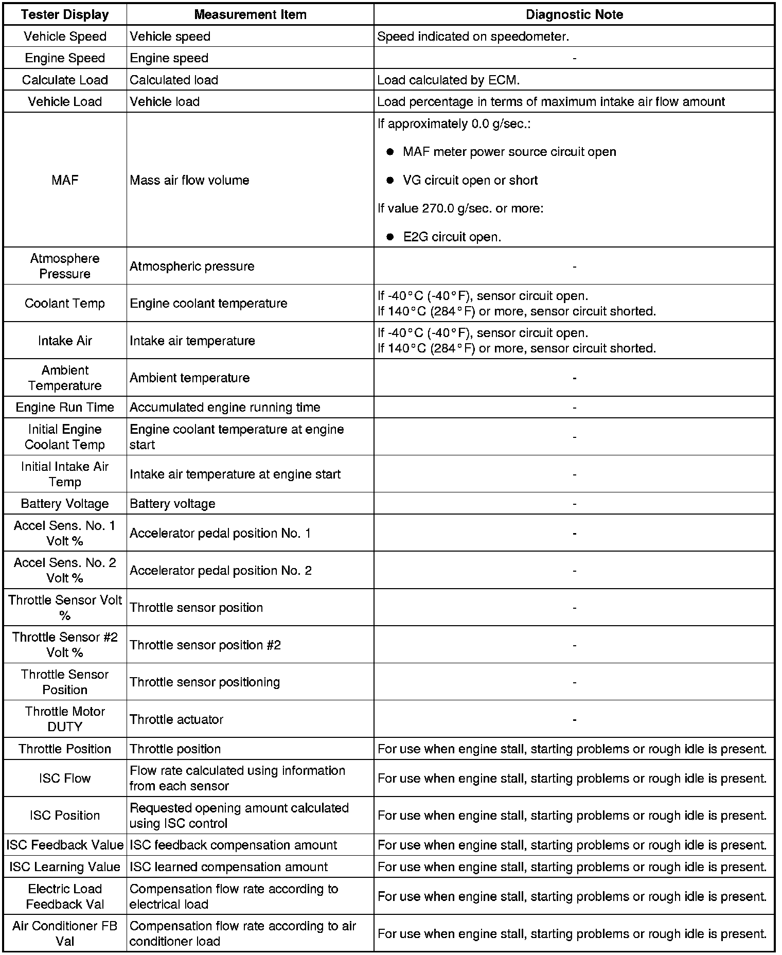 * The ECM records vehicle and driving condition information as freeze frame data the moment a DTC is stored. When troubleshooting, freeze frame data can be helpful in determining whether the vehicle was moving or stationary, whether the engine was warmed up or not, whether the air-fuel ratio was lean or rich, as well as other data recorded at the time of a malfunction.