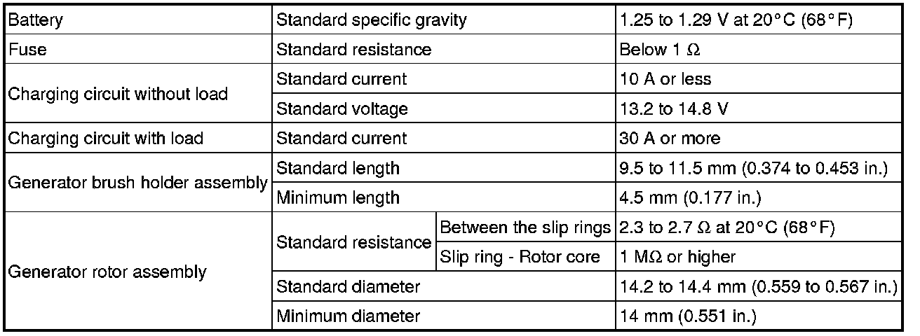 SERVICE SPECIFICATIONS: 2ZR-FE CHARGING: SERVICE DATA
