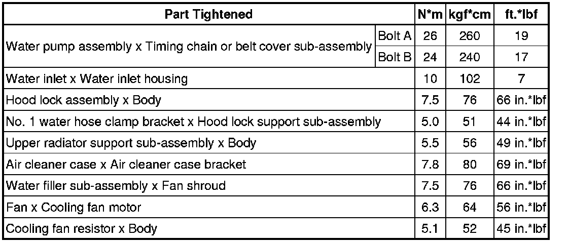 SERVICE SPECIFICATIONS: 2ZR-FE COOLING: TORQUE SPECIFICATIONS