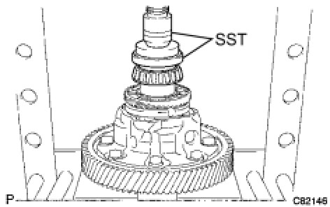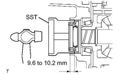 (a) Using SST and a press, install the front differential case rear tapered roller bearing (inner race) onto the differential case.