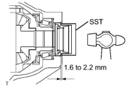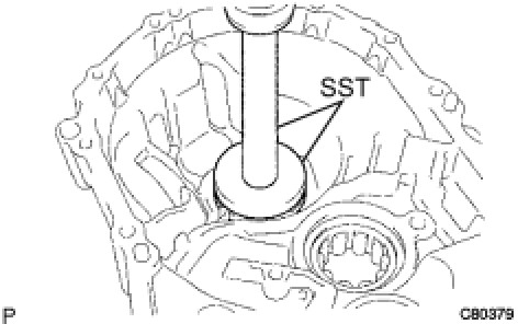(a) Using SST and a hammer, install a new front transaxle case oil seal onto the front transaxle case.
