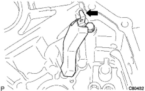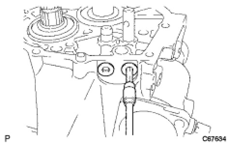 * Install the No. 2 oil receiver pipe while holding it against the manual transmission case, as shown in the illustration.