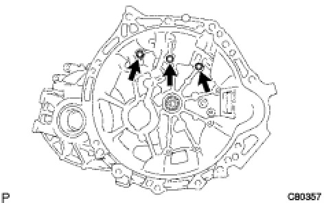 (c) Install the 3 bolts onto the manual transaxle side.