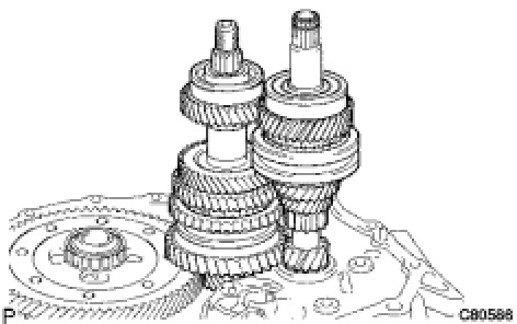 (a) Coat the sliding and rotating surfaces of the input and output shafts with gear oil and install them onto the transaxle case.