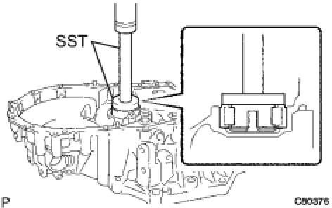 (a) Using SST and a hammer, install a new transmission case oil seal onto the manual transmission case.