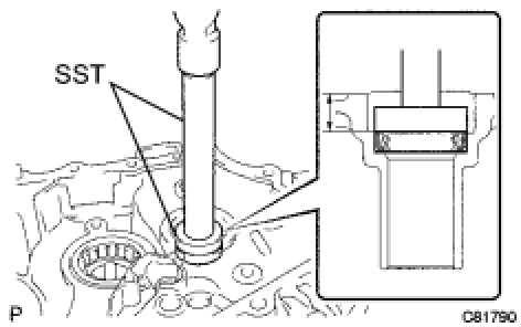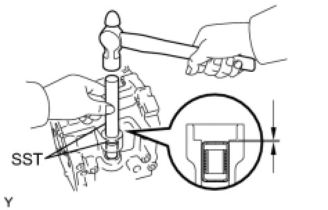 (a) Using SST and a hammer, install a new transaxle case oil seal onto the front transaxle case.
