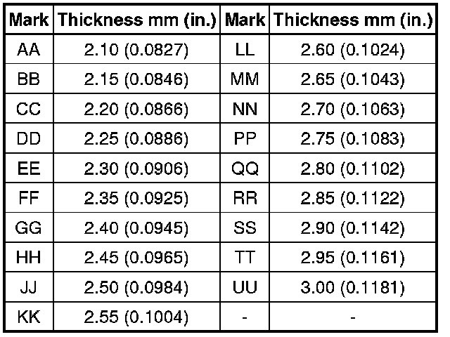 The preload changes by approximately 0.3 to 0.4 N*m (3 to 4 kgf*cm, 2.6 to 3.5 in.*lbf) per each 0.05 mm (0.0020 in.) change in plate washer thickness.