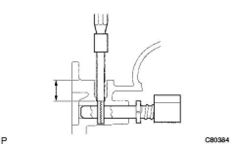 (d) Using a hexagon wrench and a torque wrench, install the reverse restrict pin plug onto the manual transmission case.