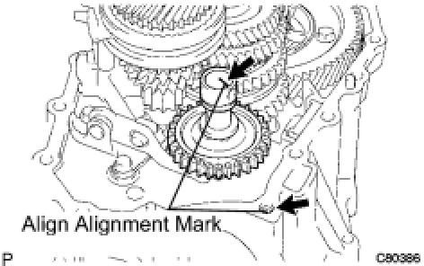 Align the mark on the reverse idler gear shaft with the bolt hole as shown in the illustration.