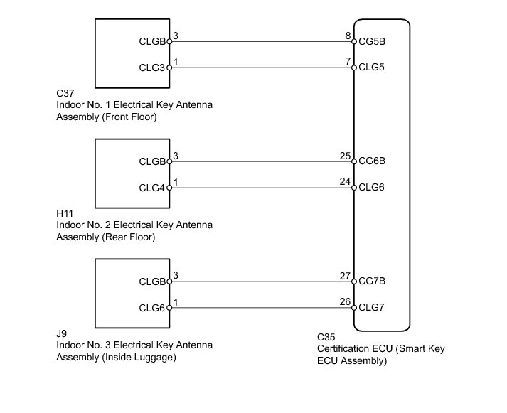 * The indoor electrical key antenna assemblies have an antenna coil between each pair of CLG terminals.