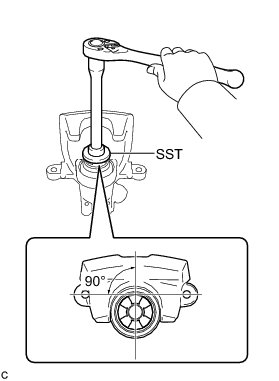 (a) To compensate for pad lining thickness, use SST to adjust the protrusion of the rear disc brake piston by turning it.