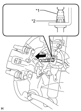 (a) Insert the No. 3 parking brake cable assembly into the rear disc brake cylinder assembly and attach the clip of the No. 3 parking brake cable to the rear disc brake cylinder guide as shown in the illustration.