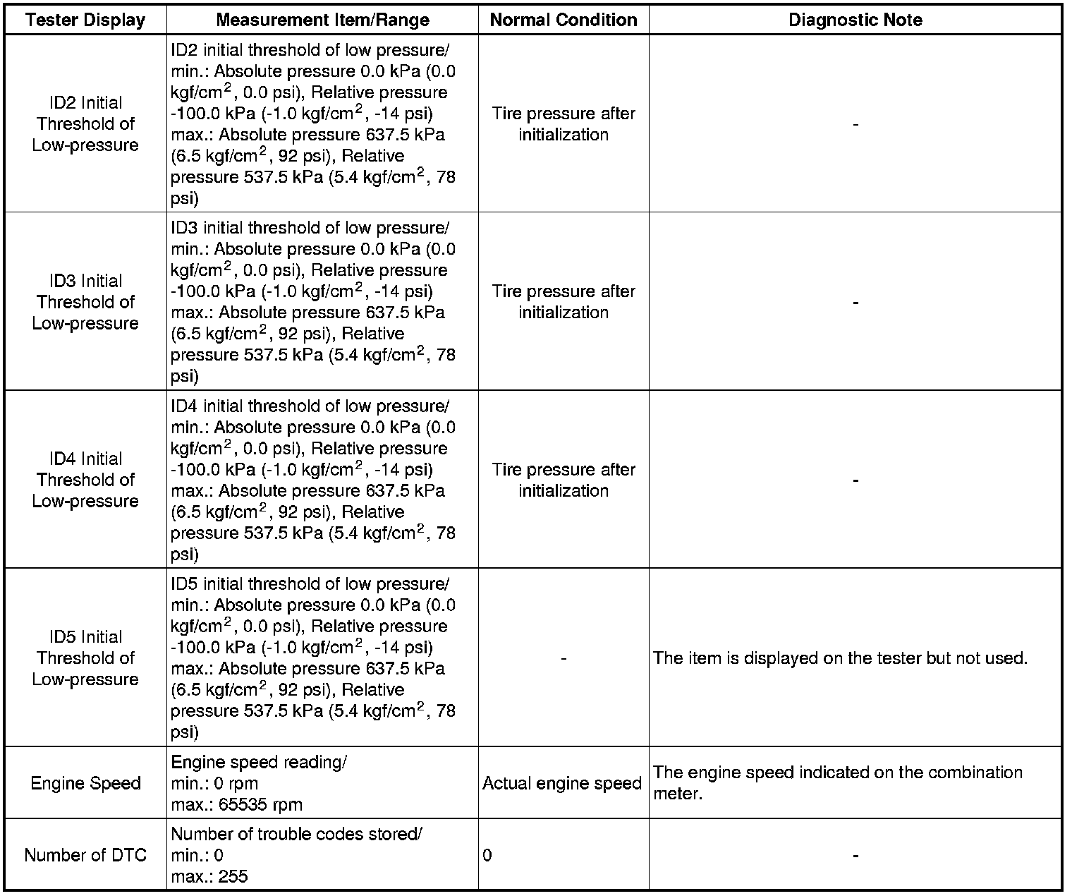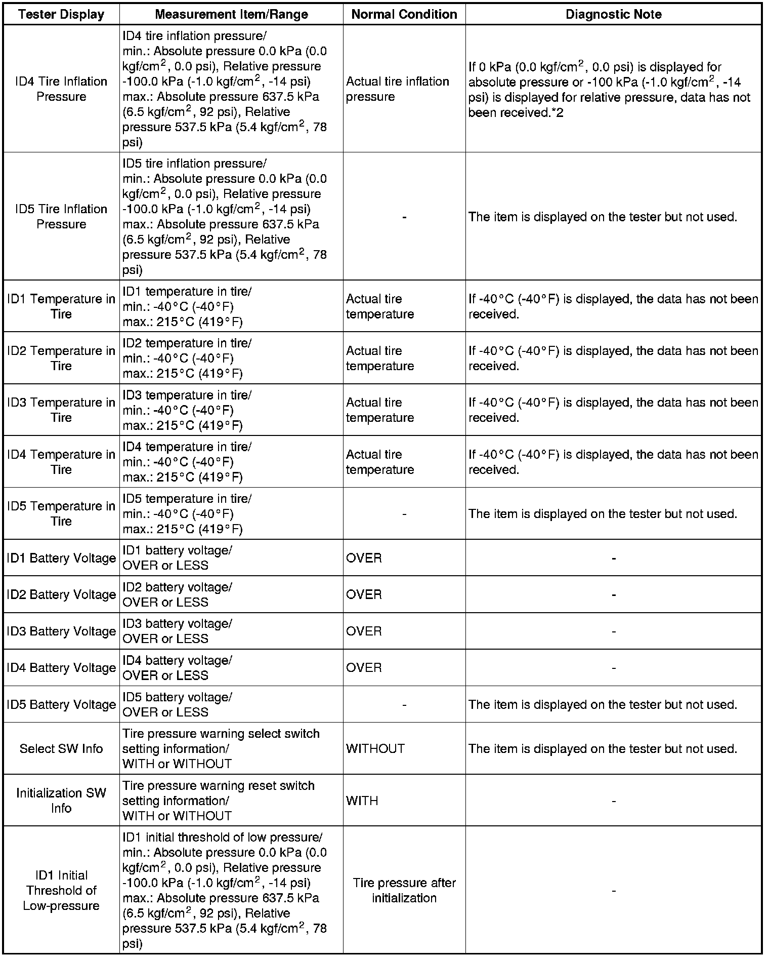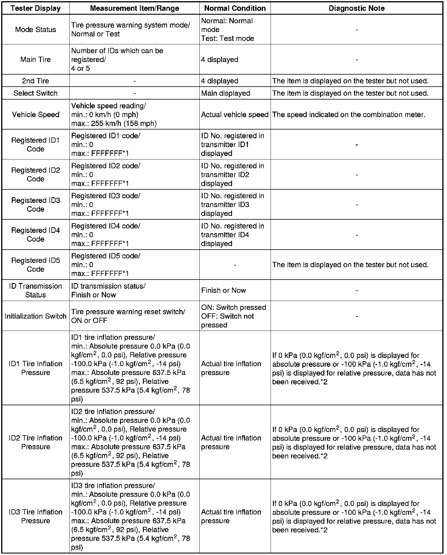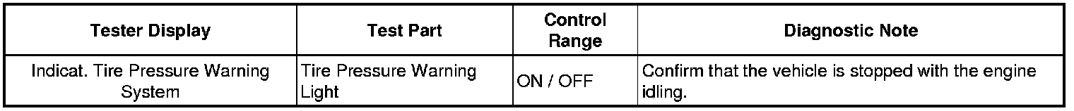 TIRE PRESSURE MONITORING: TIRE PRESSURE WARNING SYSTEM: DATA LIST / ACTIVE TEST