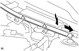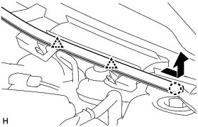 (a) Slide the hood to cowl top seal as shown in the illustration and detach the 2 clips and claw.