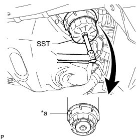 (f) Using SST, tighten the oil filter cap.