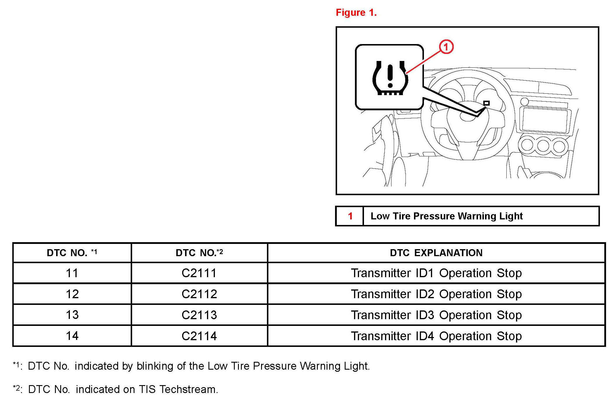 ^ The DTCs will automatically clear when the tire pressure warning valves/sensors are activated.