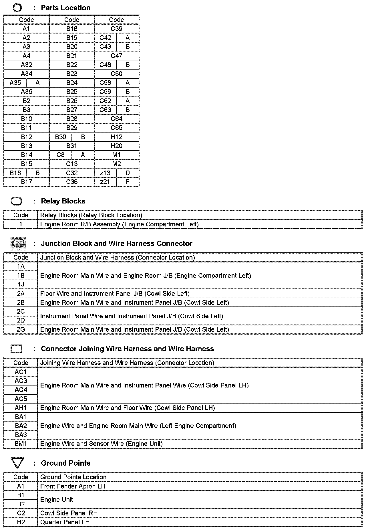 Locations: The locations of components, connectors, ground points, and splices referred to within these diagrams can be found at Vehicle Locations. Locations
