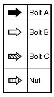 Except bolt 1, 2, 3 and 4 - Torque 21 Nm (214 kgf-cm, 15 ft-lbf)