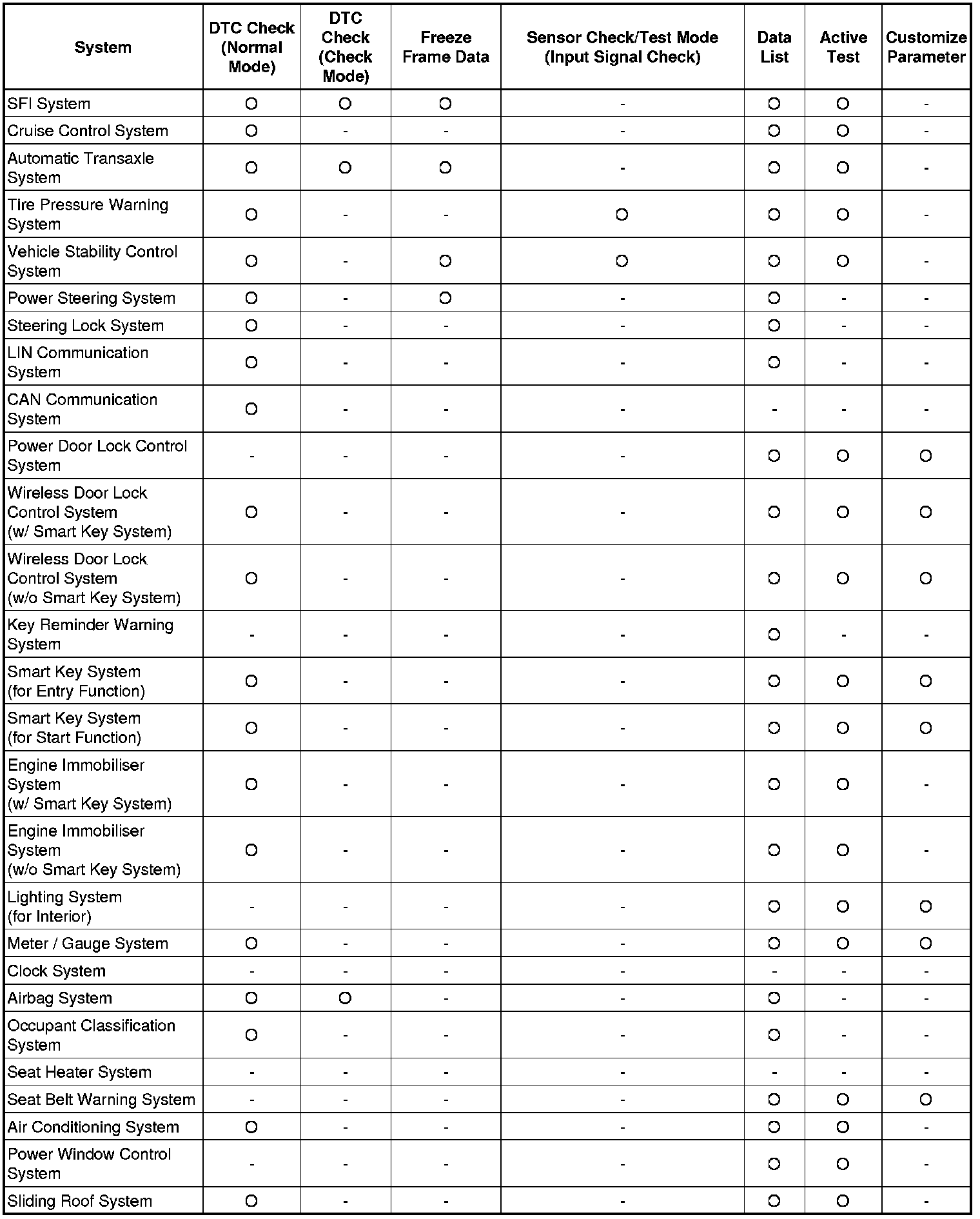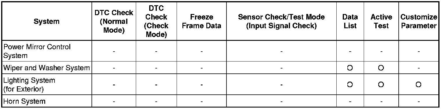 * Another function is the Input Signal Check, which checks if the signals from various switches are sent to the ECU correctly.