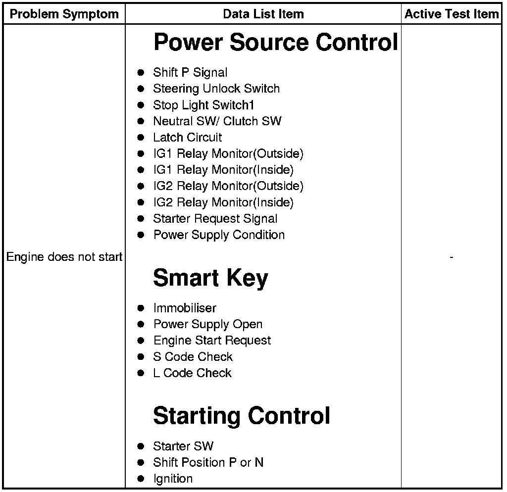 * If the smart key system is disabled through the customize function, enable the system before performing troubleshooting Smart Key System (for Start Function).
