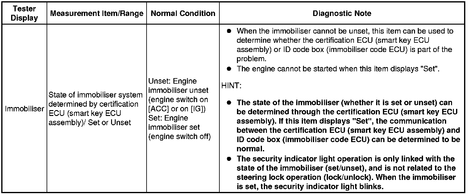 5. CHECK SECURITY INDICATOR LIGHT (ENGINE IMMOBILISER SYSTEM UNSET)