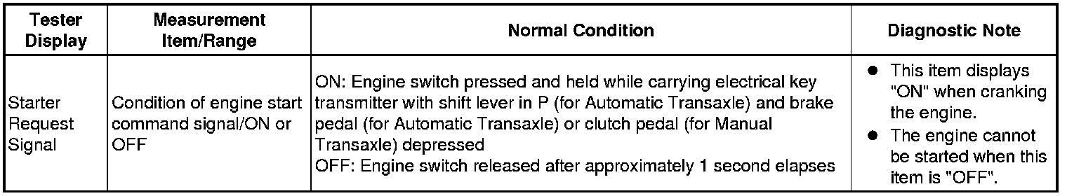15. READ VALUE USING TECHSTREAM (STARTER REQUEST SIGNAL)
