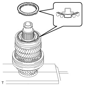When installing the 4th gear synchronizer ring, align the protrusion of the 4th gear synchronizer ring with the cutout of the No. 2 transmission clutch hub.
