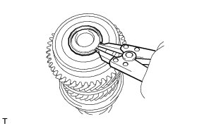 (b) Using a snap ring expander, install the rear input shaft bearing shaft snap ring.