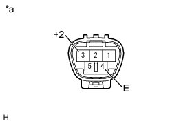 (1) Connect the positive (+) lead of the battery to terminal 5 (+1) and the negative (-) lead to terminal 4 (E). With the motor operating at low speed (LO), disconnect terminal 5 (+1) to stop the wiper motor operation at any position other than the automatic stop position.