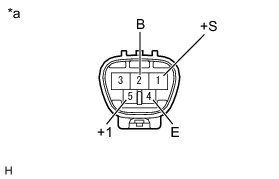 (2) Using SST, connect terminals 1 (S) and 5 (+1). Then connect the positive (+) lead of the battery to terminal 2 (B) and the negative (-) lead to terminal 4 (E) to restart the motor operation at low speed (LO).